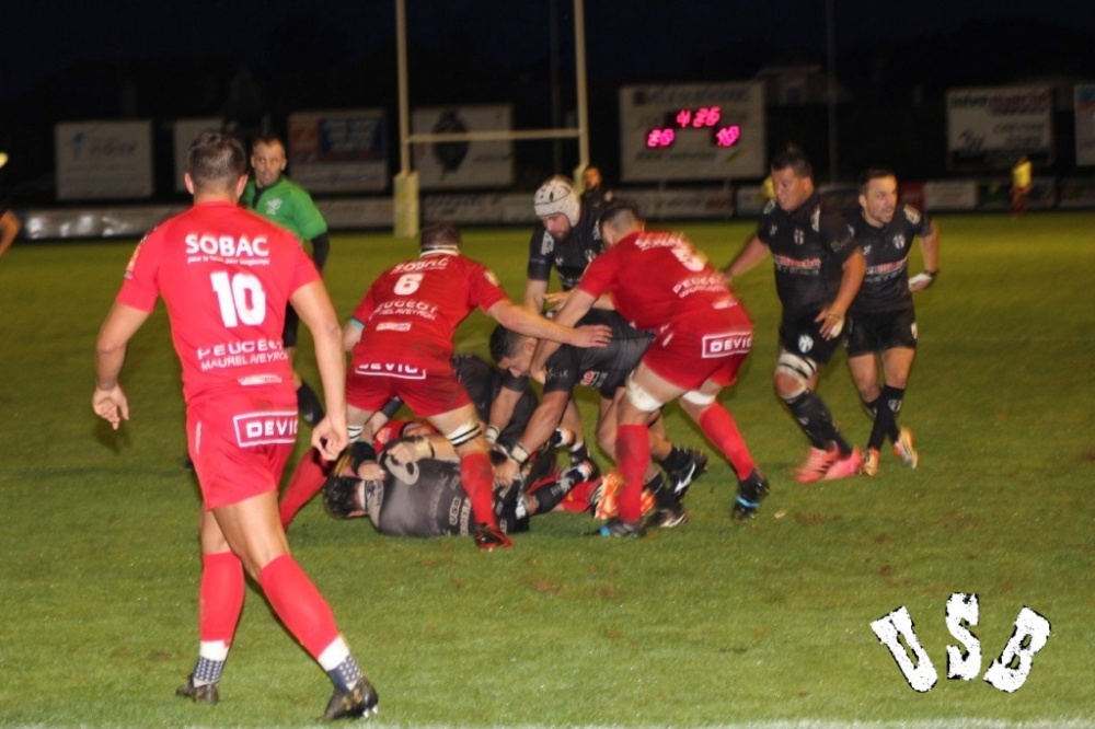 Après une première mi-temps à l’avantage des locaux où le visiteur du jour Rodez ne produit que peu de jeu, les visiteurs se remettent dans le match et l’USB comprend qu’il ne doit rien lâcher sur son terrain. Le manque de réussite des buteurs des noirs et blancs (5 coups de pieds manqués) les privent d’une sérieuse avance et Rodez prouve qu’il a des ressources et on commence à sérieusement s’inquiéter côté Bergeracois. Les Usbistes défendent fort avec sérieux pour maintenir le match nul jusqu’à la fin de la rencontre où leurs adversaires les pressent dans leur camp durant les 5 dernières minutes. Marielle MARTIGNAGO DUVERT.