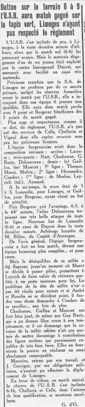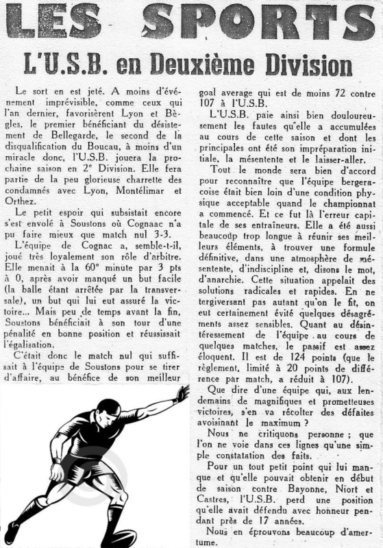 1957.1958 Bilan Saison l’USB descend en Nationale 2