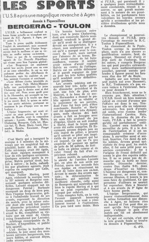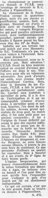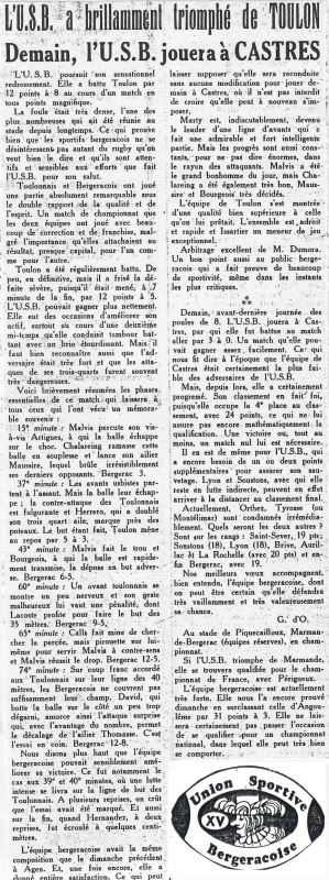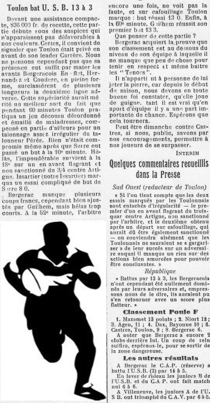 1957.1958 Toulon au Stade Gaston Simounet Bergerac Victoire 12 à 8
