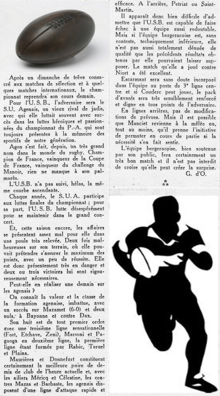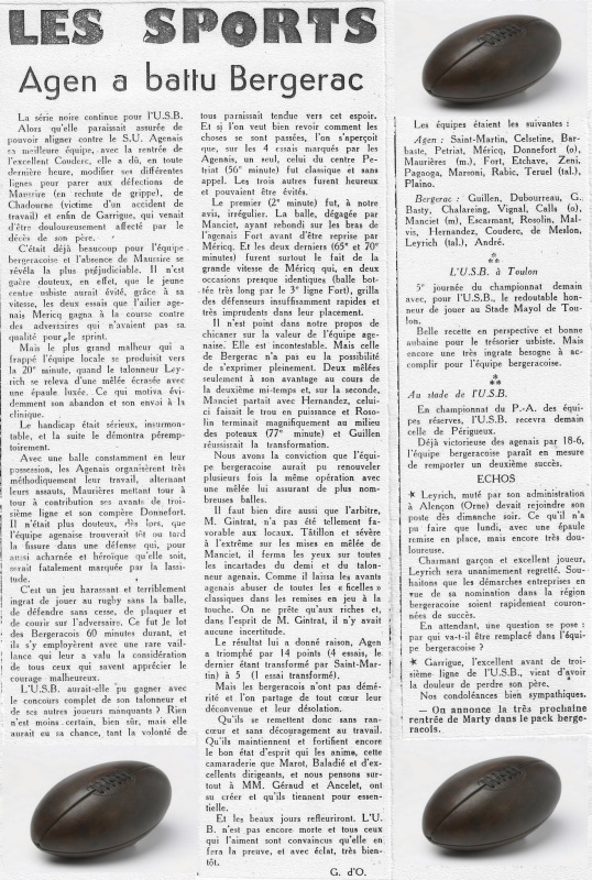 1957.1958 Agen au Stade Gaston Simounet Bergerac Défaite 14 à 5
