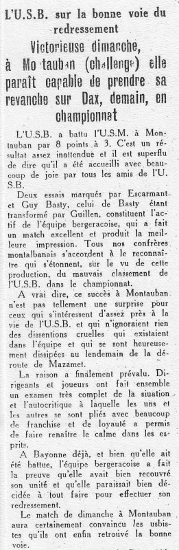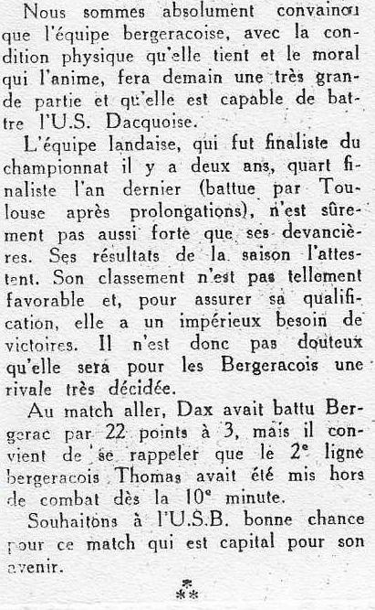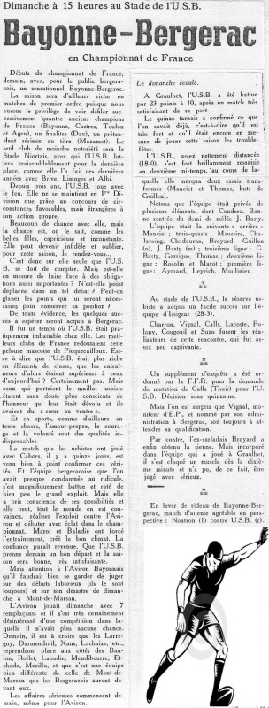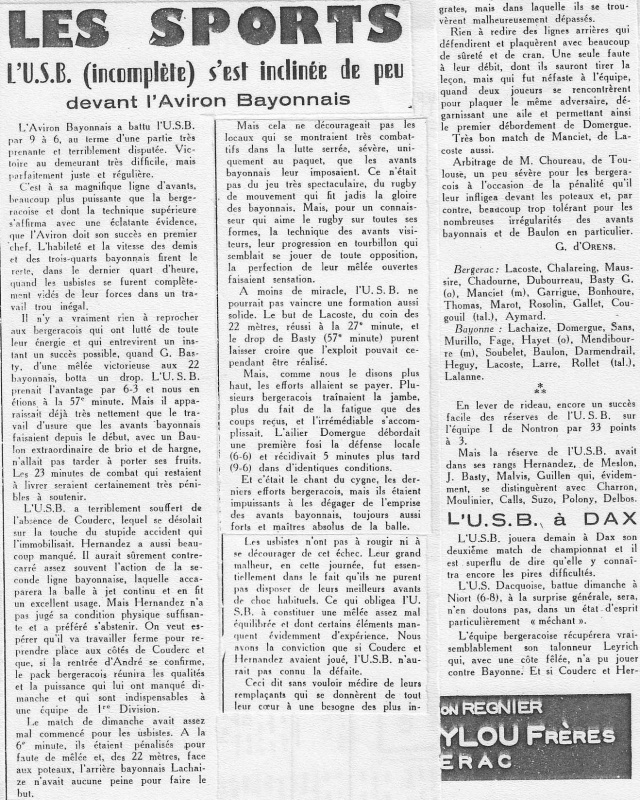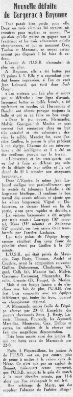 1957.1958 Bayonne au Stade Gaston Simounet Bergerac Défaite 9 à 6