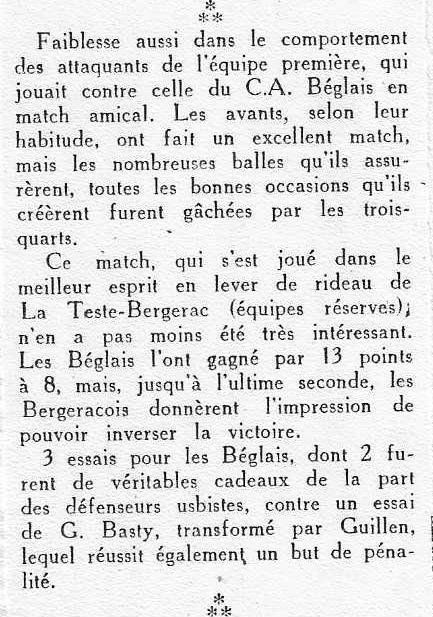 1957.1958 Bègles chez eux Amical Défaite 13 à 8