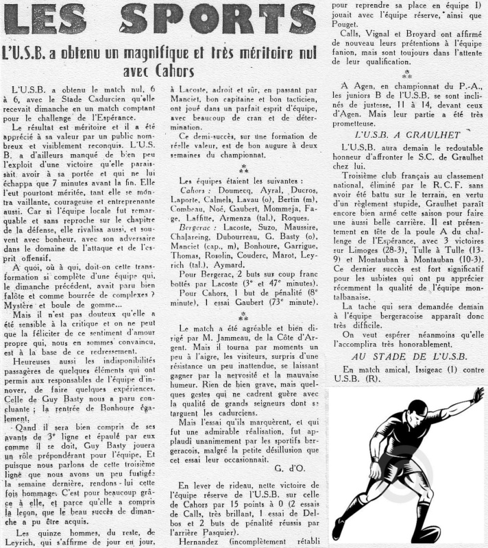 1957.1958 Cahors au Stade Gaston Simounet Bergerac Challenge de L’Espérance Nul 6 à 6