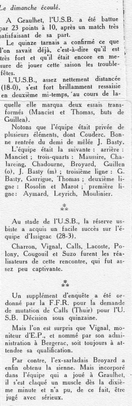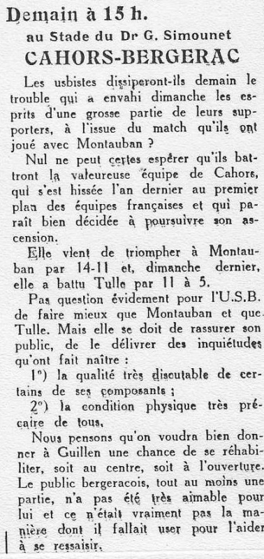 1957.1958 Sainte Foy la Grande chez eux Amical Victoire 20 à 8
