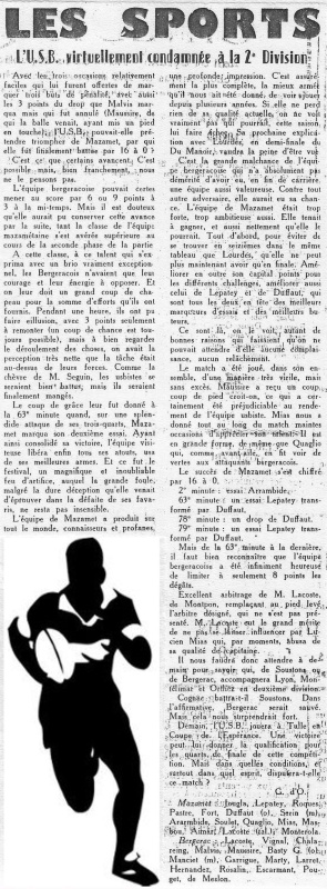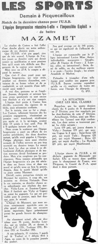 1957.1958 Mazamet au Stade Gaston Simounet Bergerac Défaite 16 à 0