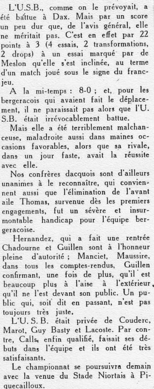 1957.1958 Dax chez eux Défaite 22 à 3