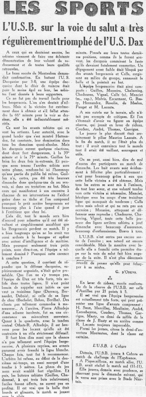 1957.1958 Dax au Stade Gaston Simounet Bergerac Victoire 3 à 0