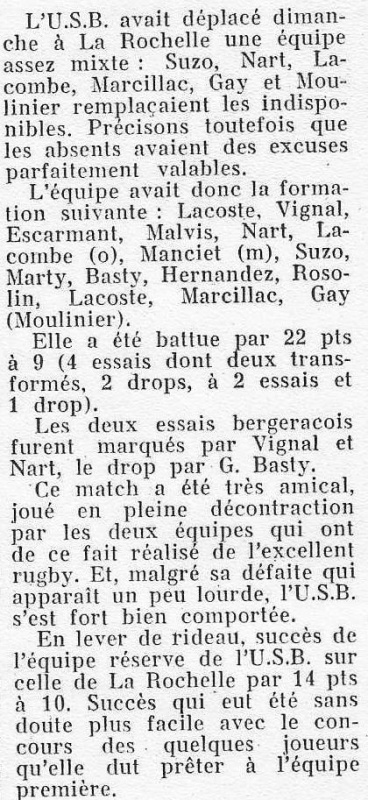 1957.1958 La Rochelle chez eux Amical Défaite 22 à 9
