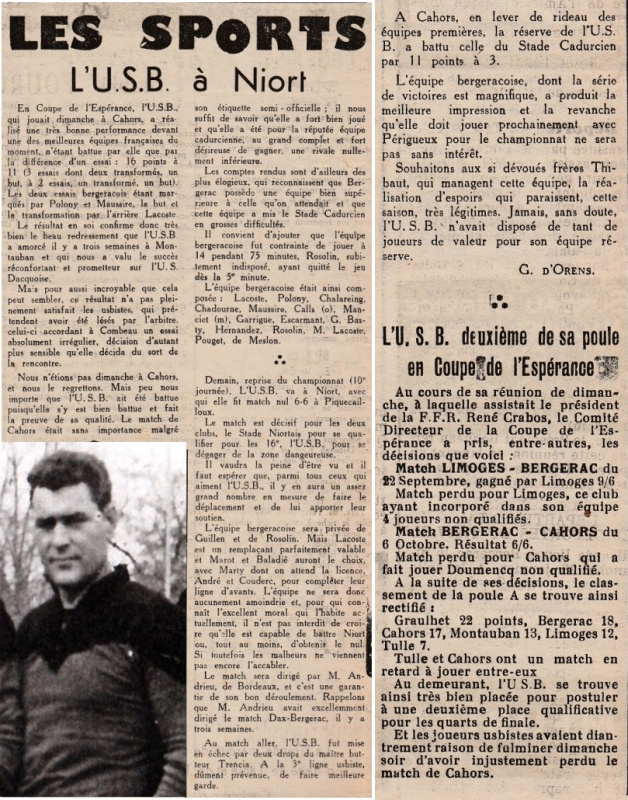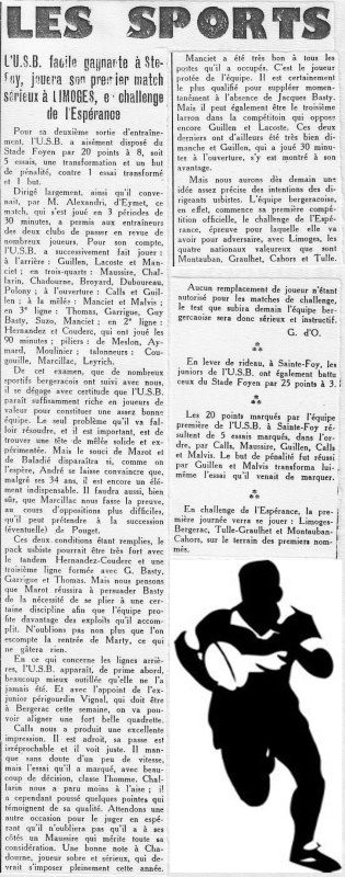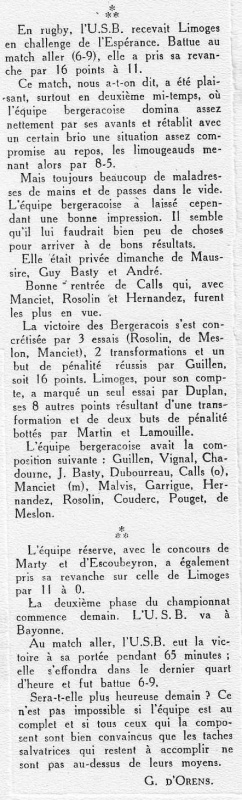 1957.1958 Limoges au Stade Gaston Simounet Bergerac Challenge de L’Espérance Victoire 16 à 11