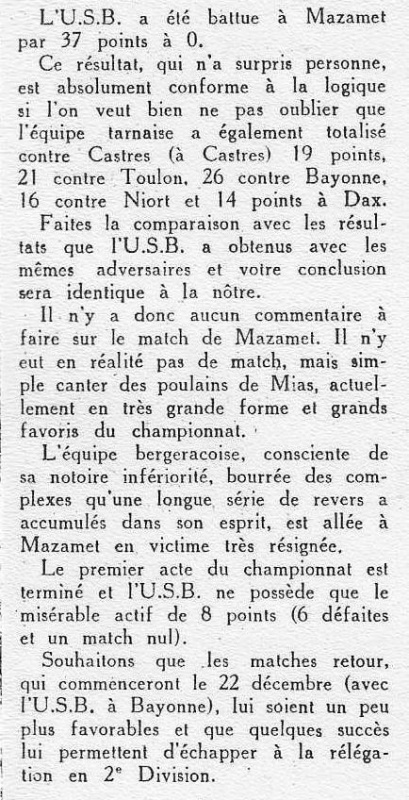 1957.1958 Mazamet chez eux Défaite 37 à 0