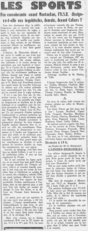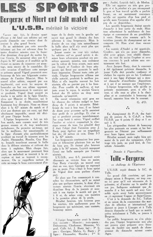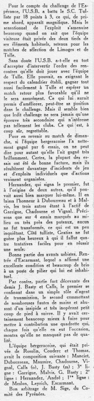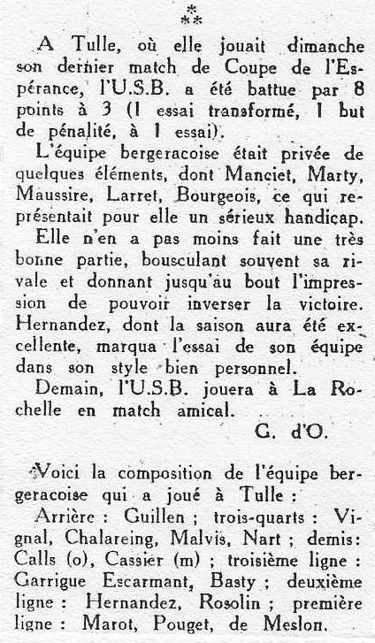 1957.1958 Tulle au Stade Gaston Simounet Bergerac Challenge de L’Espérance Victoire 18 à 3