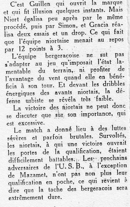 1957.1958 Niort chez eux Défaite 17 à 6