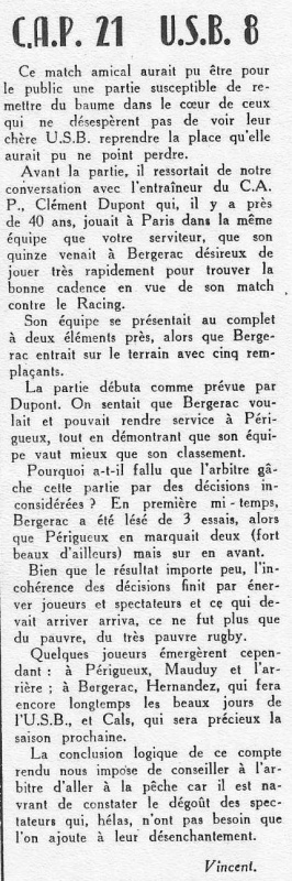 1957.1958 Périgueux CAP au Stade Gaston Simounet Bergerac Amical Défaite 21 à 8