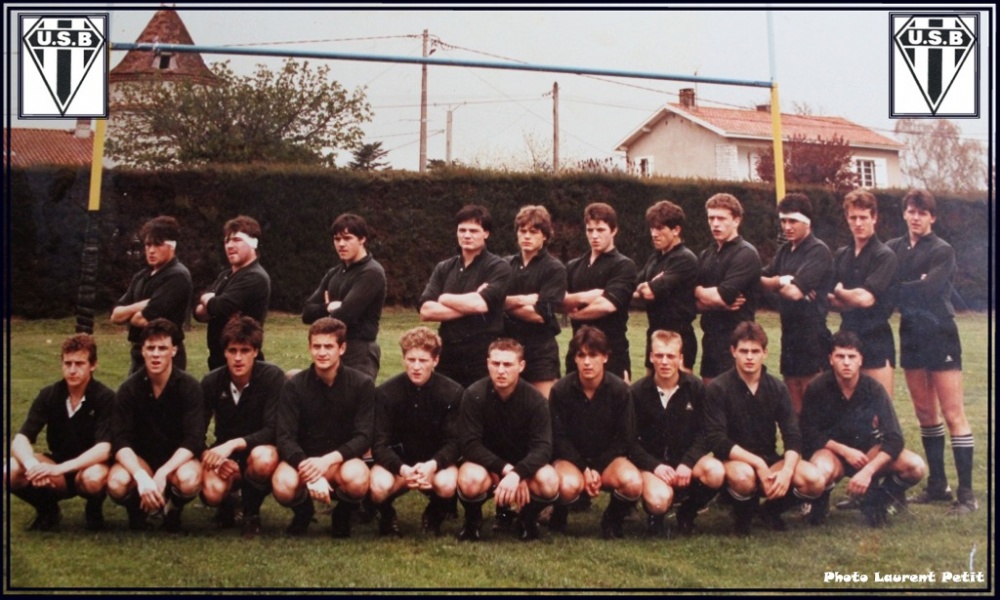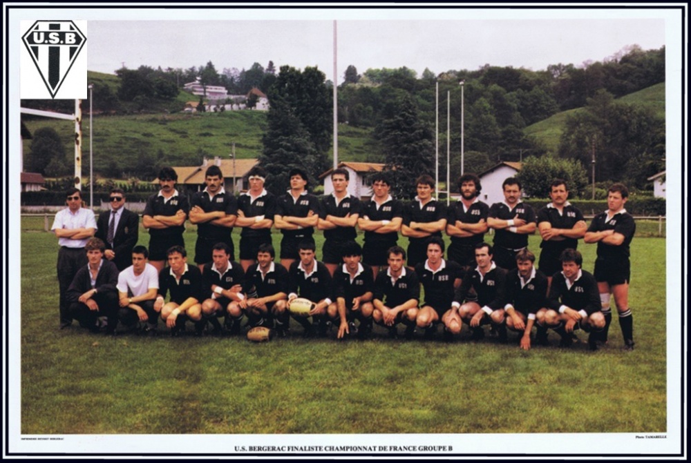 Debout Gauche : Yves Peano (Coach) Dominique Pozo. Jean-Jacques Mathieu. Thierry Eboto. Jean-Michel Maillé. Jean-Marie Gérard. Francis Adot. Gérard Lasserre. Patrick Busquets. Accroupis : Alain Gipoulou. Jean-François Piboyeu. Michel Lacoste. Eric Dubois. Noël Dendarin. Pascal Bernard. Christian Etcheveste. Jean-Luc Lhaumond (Coach) Henri Pasquet (Président) Roland Dupont (Encadrant)