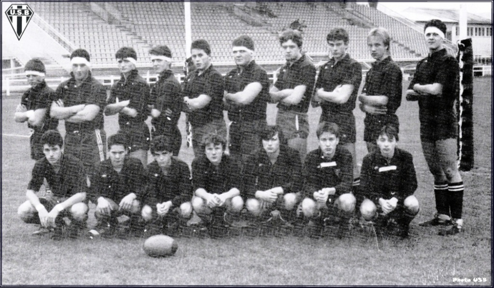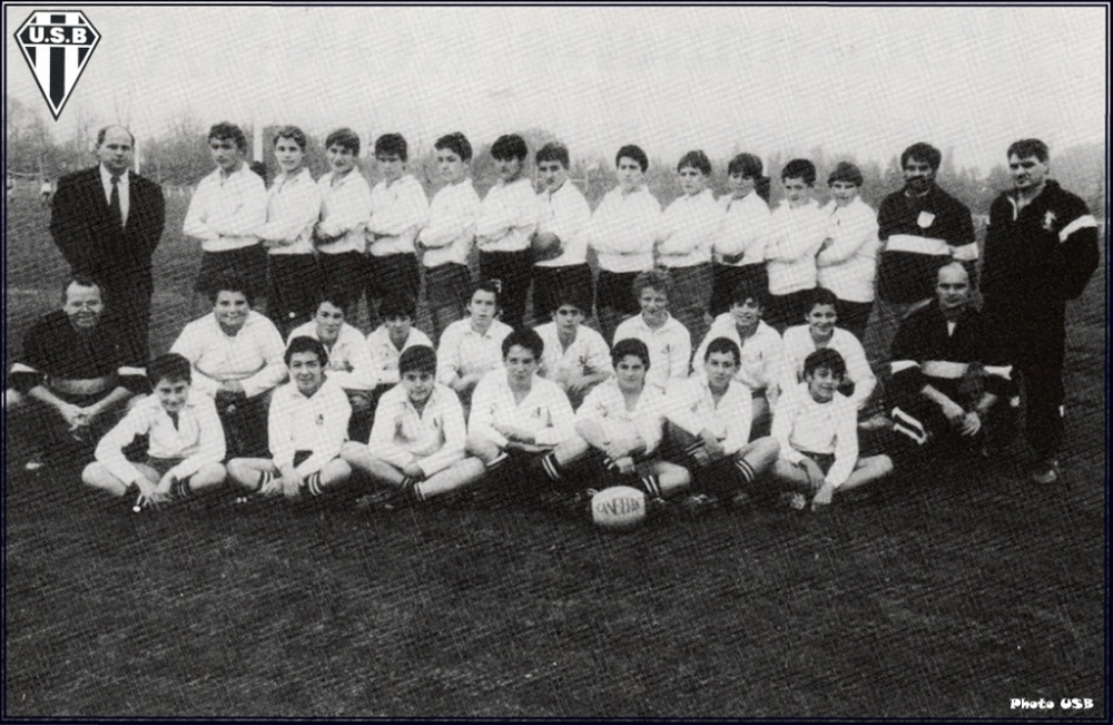 Debout gauche : Didier Moran. Pascal Alvarado. Jean-Luc Seco. Olivier Marty. Didier Jammes. Patrick Lacaze. Francis Adot. Michel Volte. Lionel Xifre. Gilbert Chamberon. Christophe Terrade. Accroupis : Dominique Brusau. Marc Delbos. Bruno Martini. Bruno Taudiere. Pascal Bernard. Stéphane Bourdillas. Michel Lacoste. Thierry Labat. Marc Tabone. Alain Gipoulou.